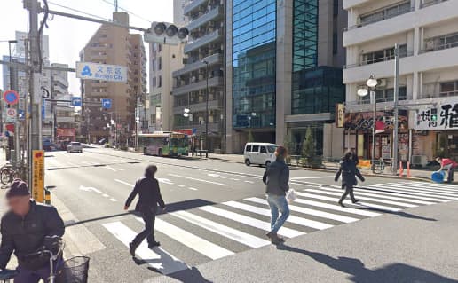 渡ったら目の前にお店の入っているビルが見えるぞ!