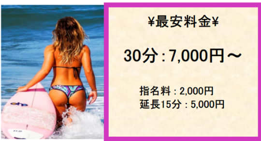 料 金 | 30分7,000円 | 60分12,000円 | 70分13,000円 | 50分8,900円 |