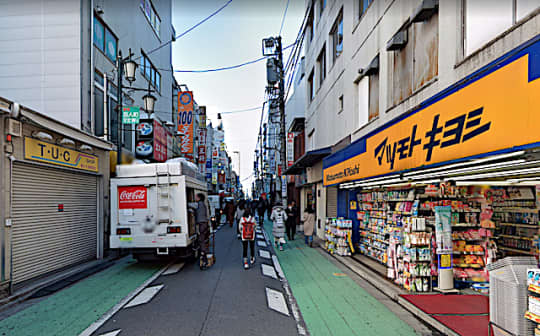 ④マツモトキヨシの店舗を右に見ながら細い道を真っ直ぐ進む。