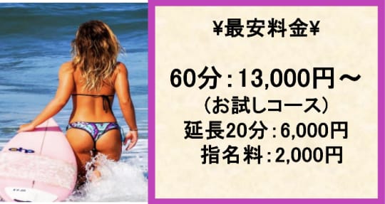 料金 | 60分16,000円〜 | 60分13,000円〜 | 60分13,200円〜 | 60分12,000円〜 |