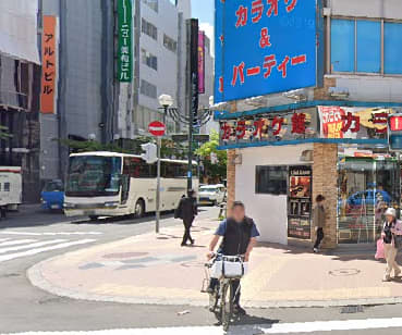 しばらく歩くと、向かって右手にカラオケ店が見えてくる。