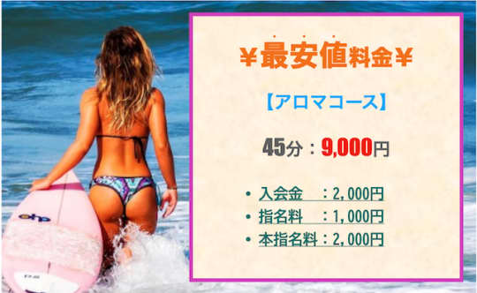 アラマンダの最安値料金は、「アロマコース45分」9,000円だ。