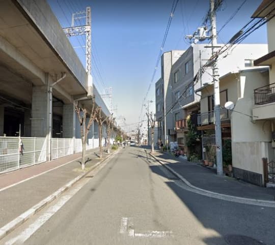 道順は、住ノ江駅東出口を南海本線沿いを北東に進みます。