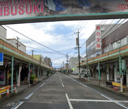 指宿のアーケード街をくぐり、朝日生命が左にある道をまっすぐ進んでね。