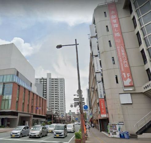すぐに大きな交差点。正面に福岡銀行のある大通りを左へ