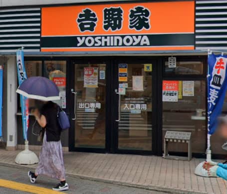 階段を上がってくるとすぐに、吉野家が見えてくる。