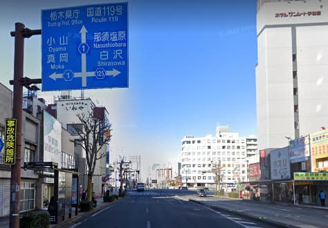 まずは、JR宇都宮駅を降り、国道119号線沿いをまっすぐ進みます。