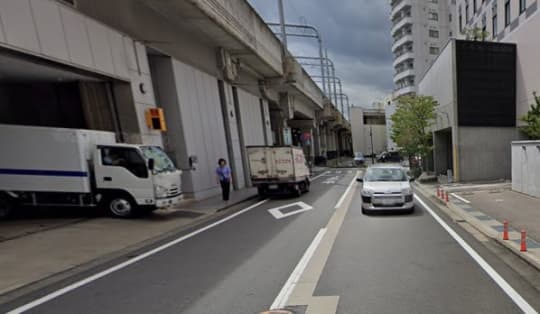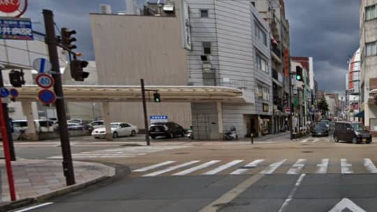 真っすぐ進むと交差点があるので、信号を渡らず左へ曲がる。