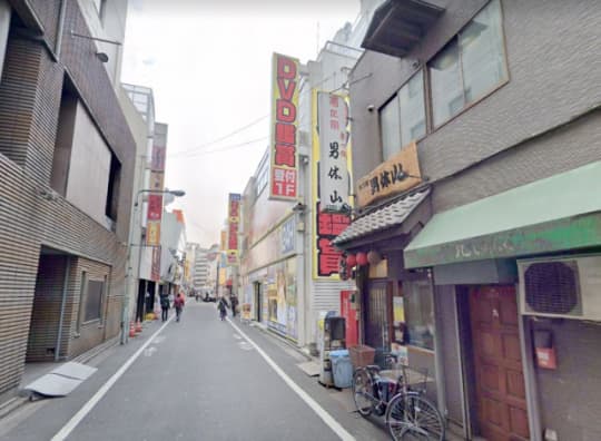 歩いて行くと、男体山(居酒屋)や、DVD鑑賞のお店があるな。