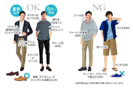 ・ドレスコード(ジャケット・スラックス・革靴着用で入店)