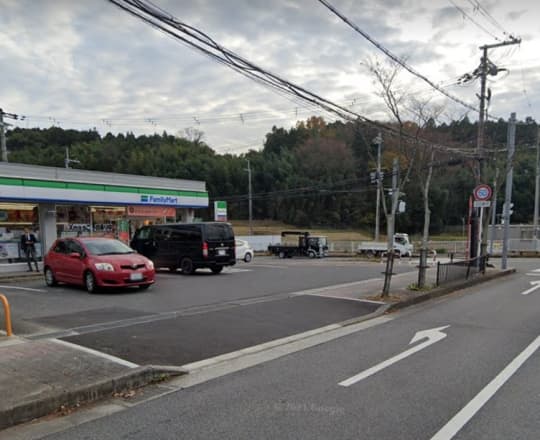 おごと温泉駅の東口を出たら、ファミリーマートを左に曲がる。