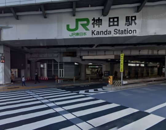 まずは神田駅から東口に出ますよ!