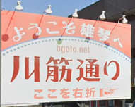 大きな『川筋通り』という看板が目に付くと思うので右に曲がり看板の前を進んでいこう。