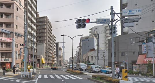 明治通りを進んできて、三ノ輪二丁目の交差点を右寄りに進んで行きましょう。