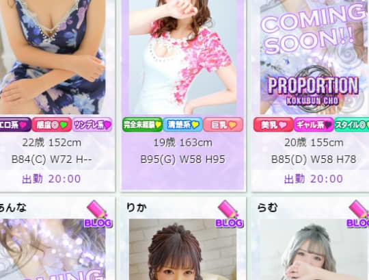 variation(バリエーション)の女の子は20代の子が中心だね。