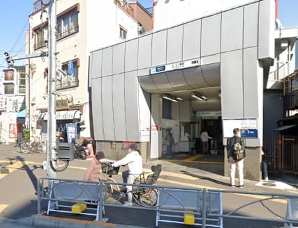 3番出口から出たら、まずは「ファミマ」のある向かい側に渡ってしまおう。