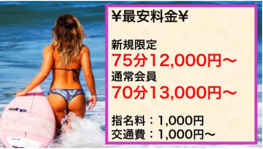 料金 | 70分10,000円~ | 70分11,000円~ | 75分12,000円〜 | 90分14,000円〜 |