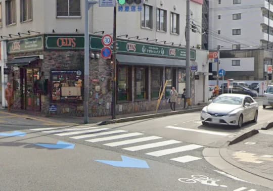しばらく歩くと大きな交差点に出るのでCELTSというアイリッシュパブの間の道を直進します。