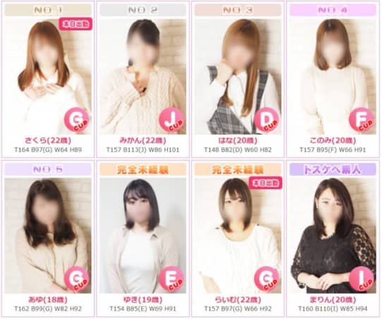 こちらのお店には、18歳~30代前半の総勢約90名越えの巨乳ちゃん達が勢揃い!