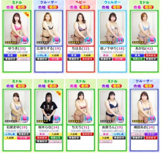 こちらのお店は、デブまでいかないちょうどよいぽっちゃり体型の美女がたくさん在籍するお店!