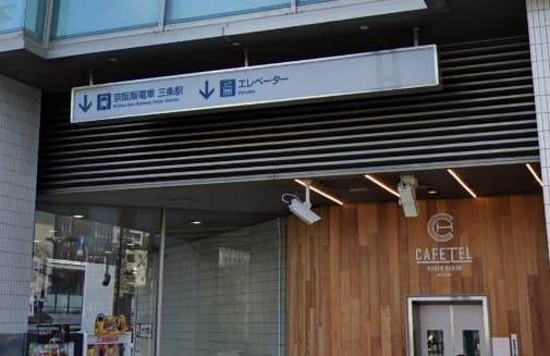 「猫弁天」は京阪本線の三条駅から歩いて3分ほどで到着します。