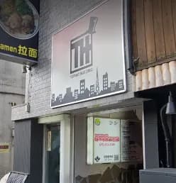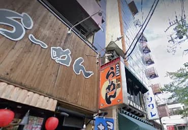 細長い路地を歩いていると左手にラーメン屋の派手な看板が見えます。