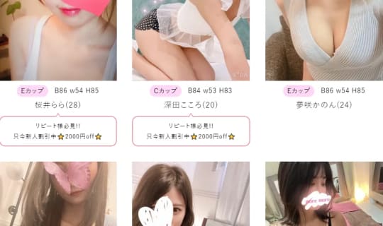 料金 | 30分5,500円~ | 60分10,000円~ | 60分10,000円~ | 40分5,900円~ |