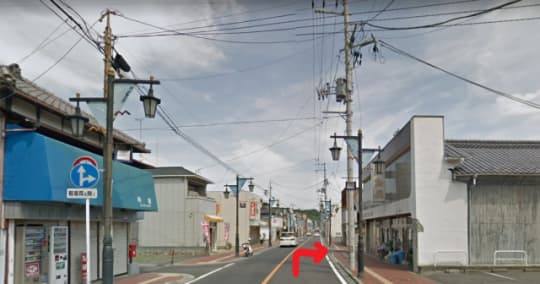 まず観光所から左へ出ます。1つ目の曲がり角を右へ曲がり直進してください!