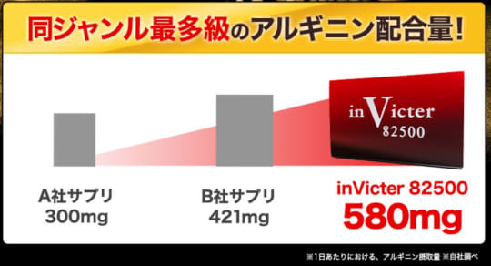 インヴィクターは、1日に摂取できるアルギニンの量が580g。