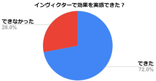 効果を実感できた人は、72%という結果に。結構高い評価が出ましたね。