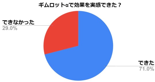 ギムロットαで効果を実感している人は7割程度。公式よりは低い結果となりました。