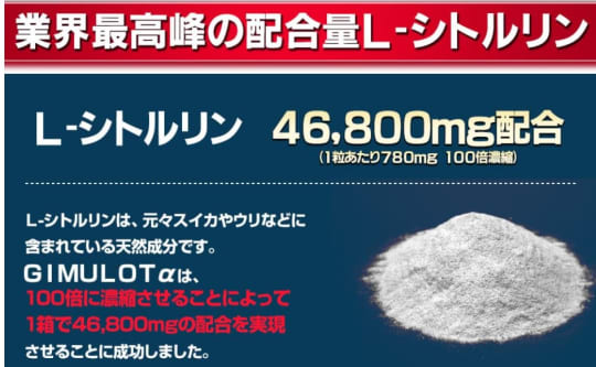 "ギムロットα"は国内生産され安全性に優れた精力剤です。効果が期待できる厳正いされた成分のもを使用しているので、即効性も期待できるんだとか。L-シトルリンを毎日大量に摂取できるのも他社にはない魅力です。気になる口コミや実際に僕が試した体験談をすべて公開します。