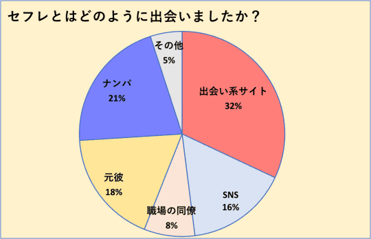 では、「Q:セフレはいますか?」の質問で「Yes」と答えた41%の女性は、セフレとどのように出会ったのでしょうか?