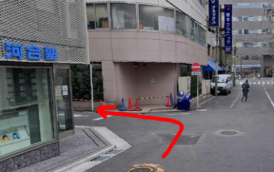 次に数十メートルほど歩いたところ、左手に「河合塾」があるので、左へ曲がり向かって右側です。
