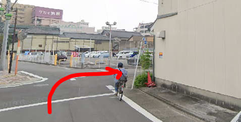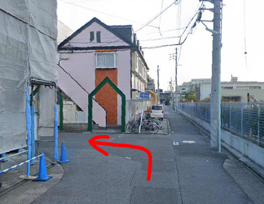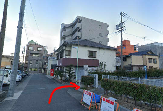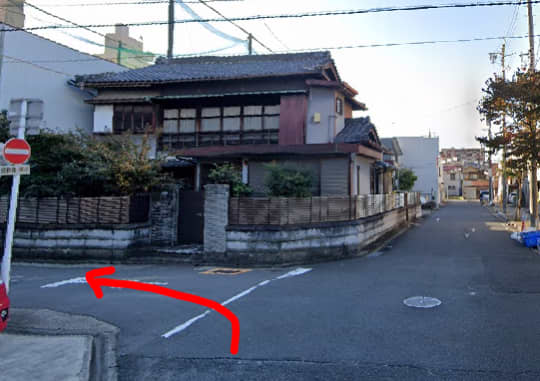 わかりにくいですが、工務店さんのところを右へ曲がります。