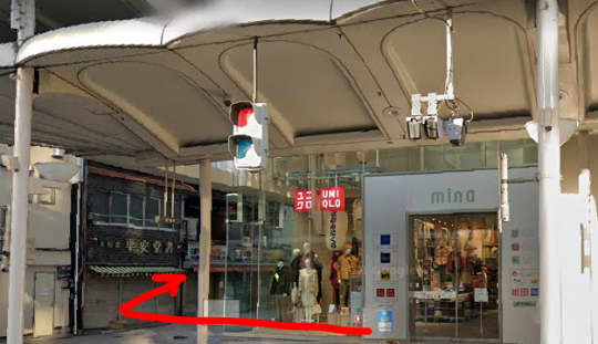 向かって右側の「ユニクロ」を右へ曲がり直進です。