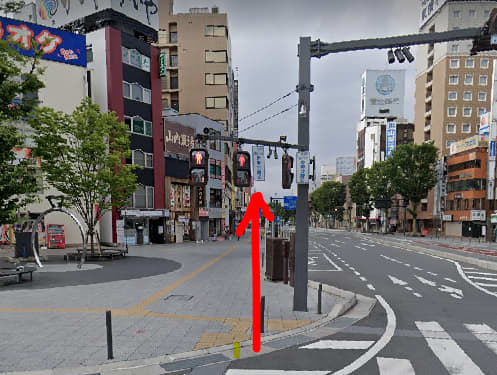 左側に「甲府地方裁判所」があるので、その信号を左へ曲がり直進します。