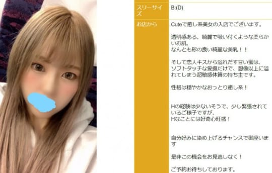 【Feeling】の特徴は、完全業界未経験者のみを採用していることでしょう!また、その中でも美人を厳選。なので、可愛くて一生懸命な子と遊べますよ!