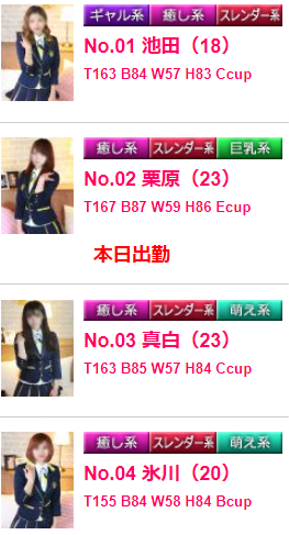 素人感あふれる若い女の子が揃っており、口コミサイトではルックスを誉める投稿が目立ちます。