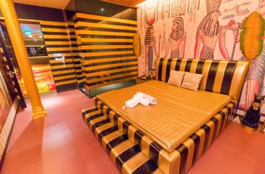 一目瞭然の、エジプト風プレイルームです。でも、これで何のイメージプレイを?お客がファラオで嬢はクレオパトラでしょうか。ちょっとハードルが高いですね、これは。