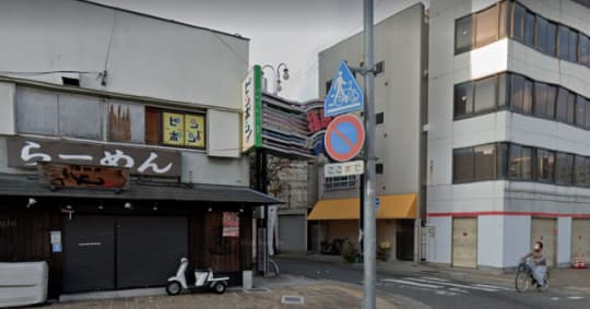 左側にラーメン屋さんが見えたら左折して、路地に入ります。