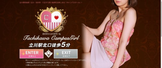 ”キャンパスガール”は20代の制服が似合う美女ばかりで、コロナ禍でも営業中だよ。激戦区・立川でも大人気のお店で、いろいろなタイプの女の子が在籍。僕は清楚系美女に愛情たっぷりのフェラでヌイてもらったよ!メルマガ・LINE登録しておくと、お得な割引サービスもあり!