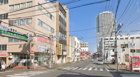 交差点が出てきます。次はさくら町きらら通りの商店街の方面へ行きます。