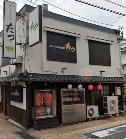 しばらく進んでいくと十字路にさしかかり、右手の方に炭火七鍋焼肉『たつ』のお店があるのでそこを左に曲がっていく。