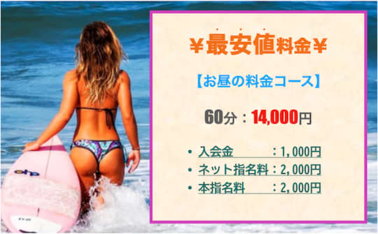 貧乳パラダイスの最安値料金は、「お昼の料金60分コース」で14,000円。