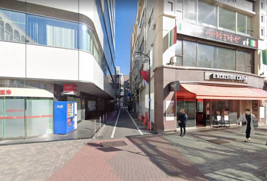 ②証券会社とカフェの間の道を右折し北へ向かう。