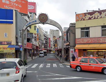 ロータリー沿いに歩いて行くと、「サンロード通り」という商店街への入り口がある。