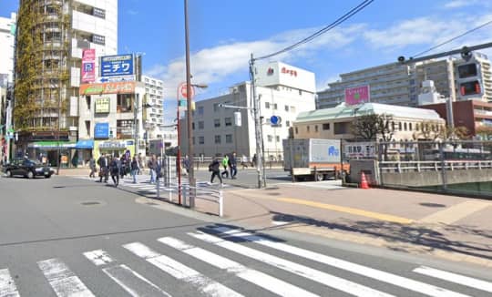 横断歩道を渡ってそのまま真っすぐ進み、「焼肉ぽんが」の左隣にあるビルのB1Fがハニープリンセスだよ。