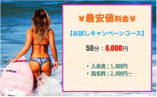 錦糸町ぽちゃの最安値料金は、激安お試しキャンペーンコース50分6,000円だね。