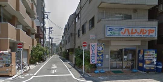 途中クリーニング店が見えるので、ここを右折。
